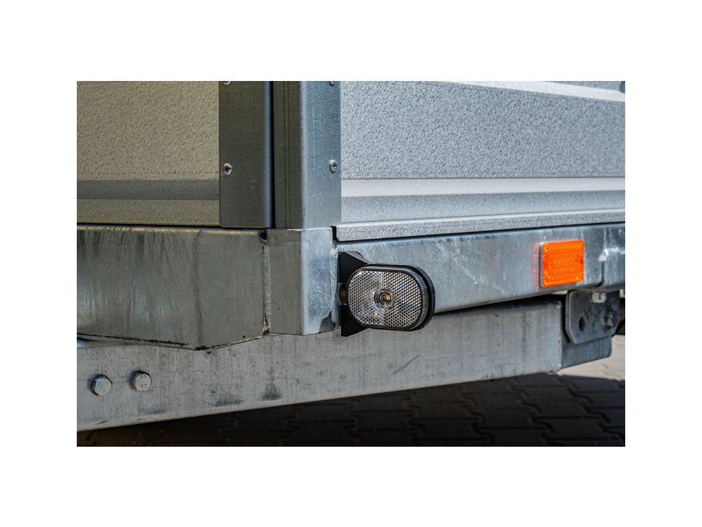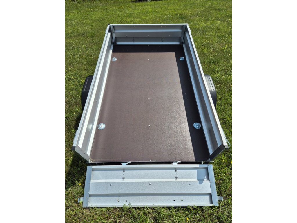 Provedení s "V" ojí, plechové bočnice 350 mm, 13“ kola, 13 pólová elektroinstalace, podloha je vyrobena z voděodolné protiskluzové překližky o síle 9 mm, 4 ks kotvících misek.