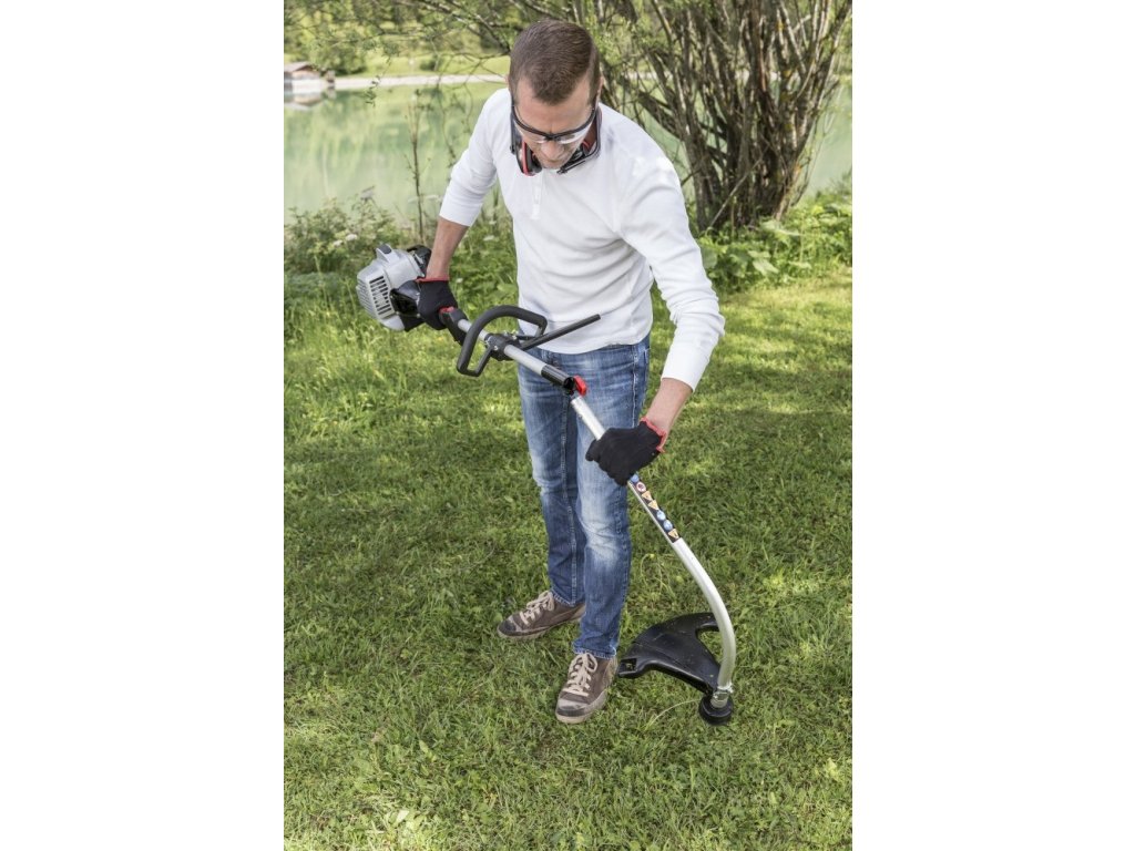 Žací hlava se šířkou záběru 41 cm, ergonomická rukojeť s měkkým polstrováním a nízká hmotnost pouhých 5 kg, činí z této motorové kosy efektivního pomocníka při sečení trávy u plotu a u zdi domu. Žací strunu snadno nastavíte na optimální délku jednoduchým poklepáním žací hlavy o zem.