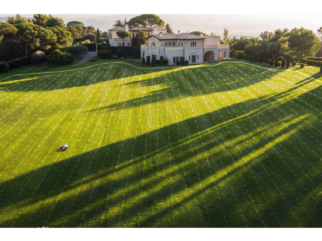 vlastní plán, vzor a výšku sečení a lze v ní vytvářet no-go zóny. Díky dvěma žacím kotoučům a 12