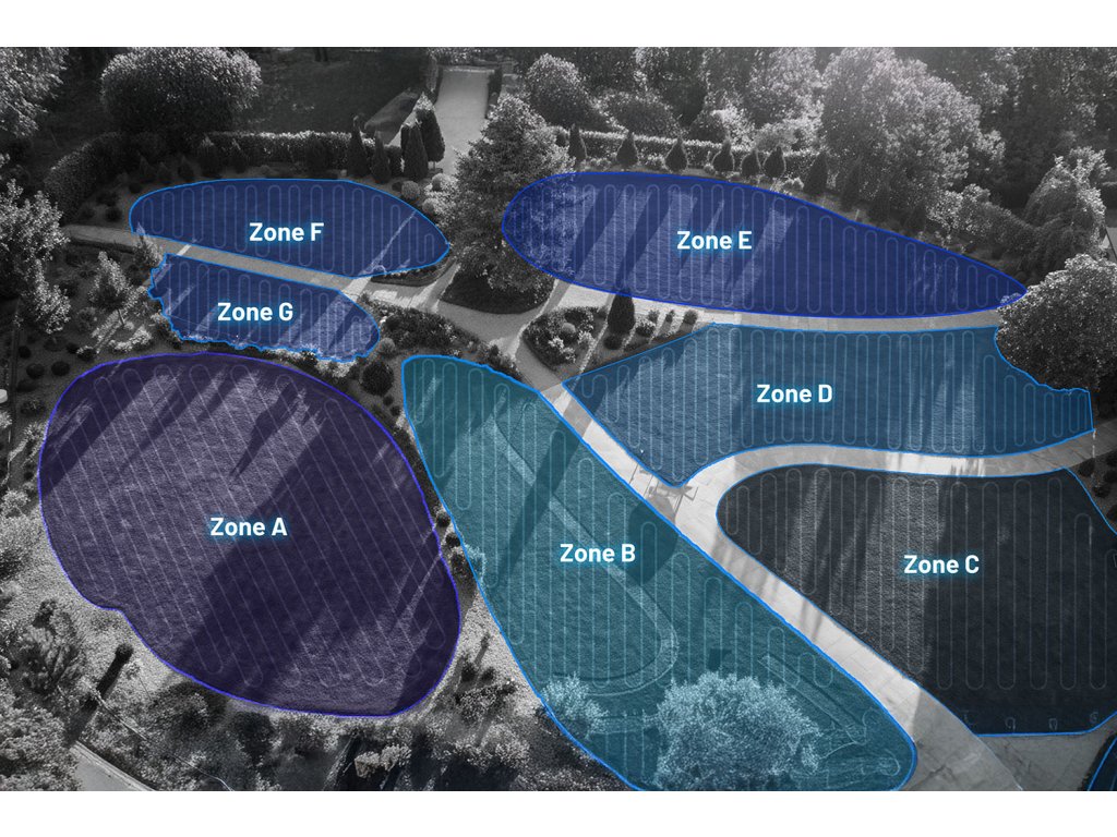 Zachycuje zahradu v bohatých detailech a pomocí pokročilé analýzy AI idendifikuje objekty reálného