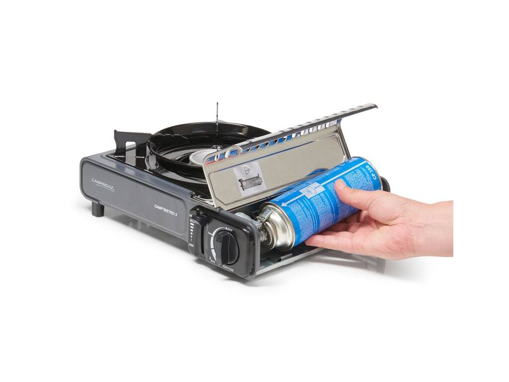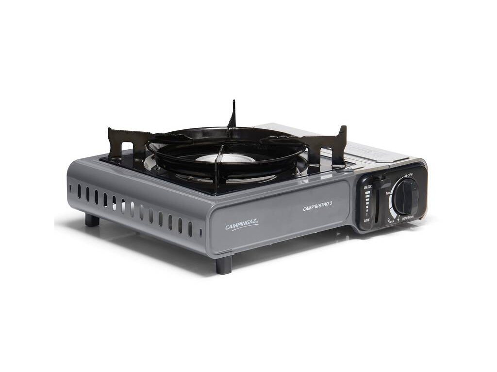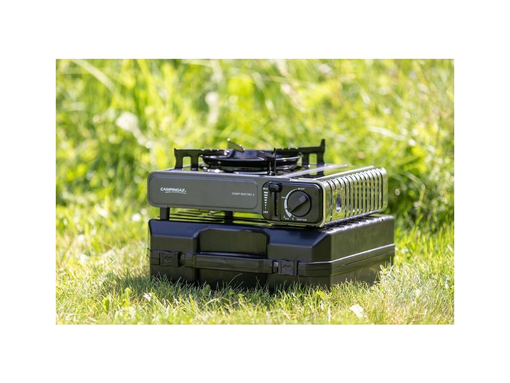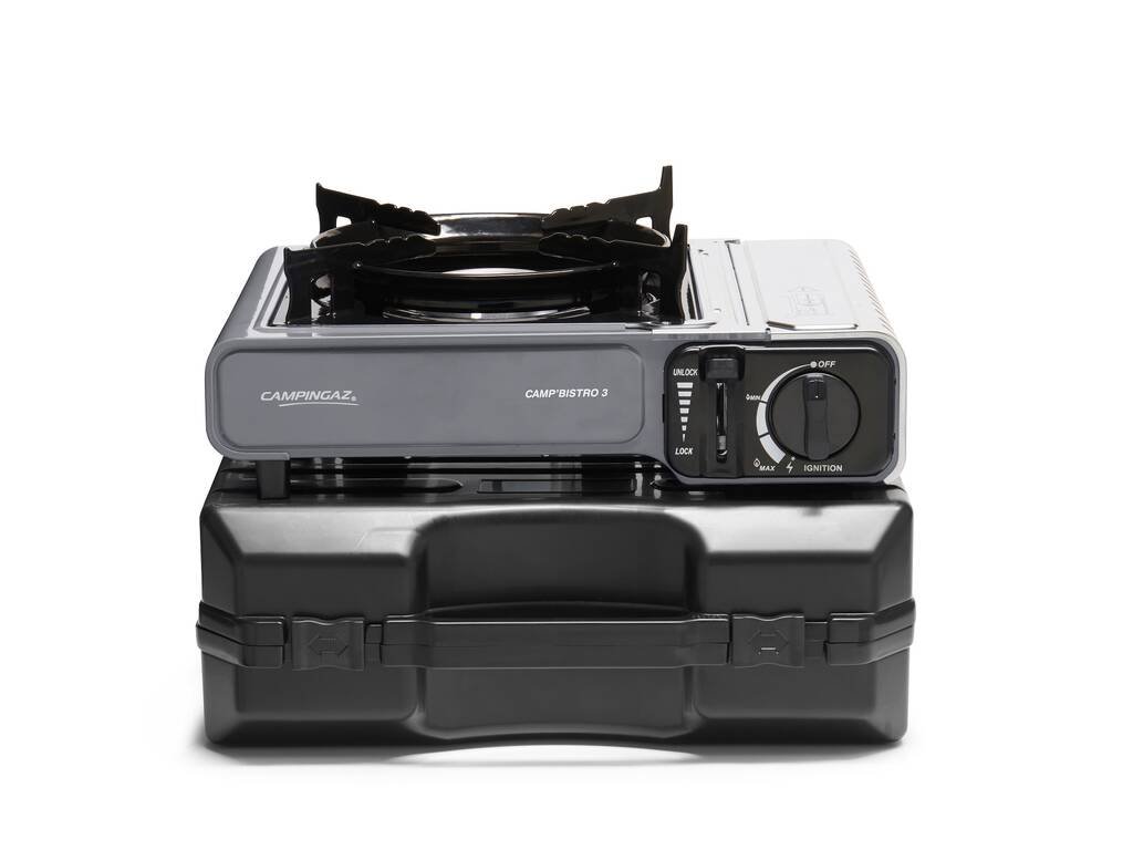 Poslední verze úspěšného vařiče Campingaz® Camp‘Bistro 3 se dvěma integrovanými bezpečnostními systémy, nerez ocelovým krytem kartuše a vylepšenou oporou hrnců a pánví, která zajišťuje stabilitu a chrání plamen před větrem. Celý vařič je stabilní i při použítí větších hrnců. Vařič je uložen ve vlastním plastovém kufříku pro snadnou přepravu a skladování. Kryt kartuše je z nerezové oceli, zvýšený prostor a zvětšené otvory napomáhají zabrátit přehřátí. Dvojitá pojistka pro omezení průtoku plynu a vysunutí kartuše při jejím případném přehřátí.