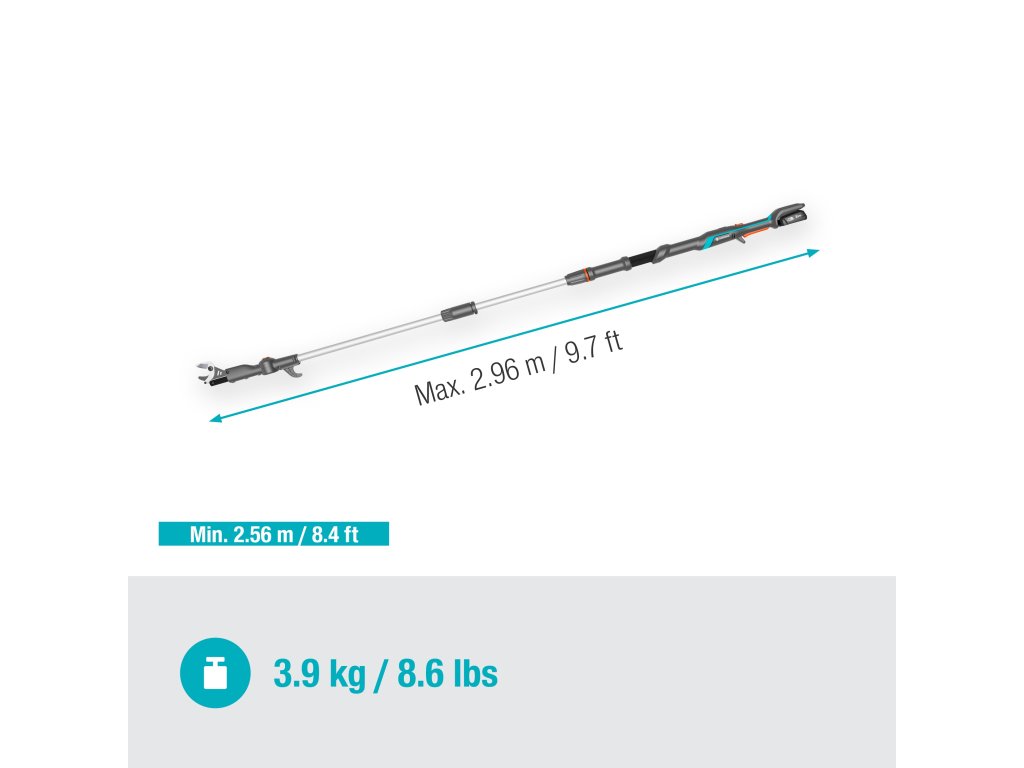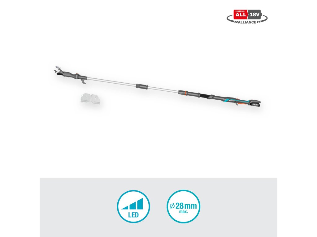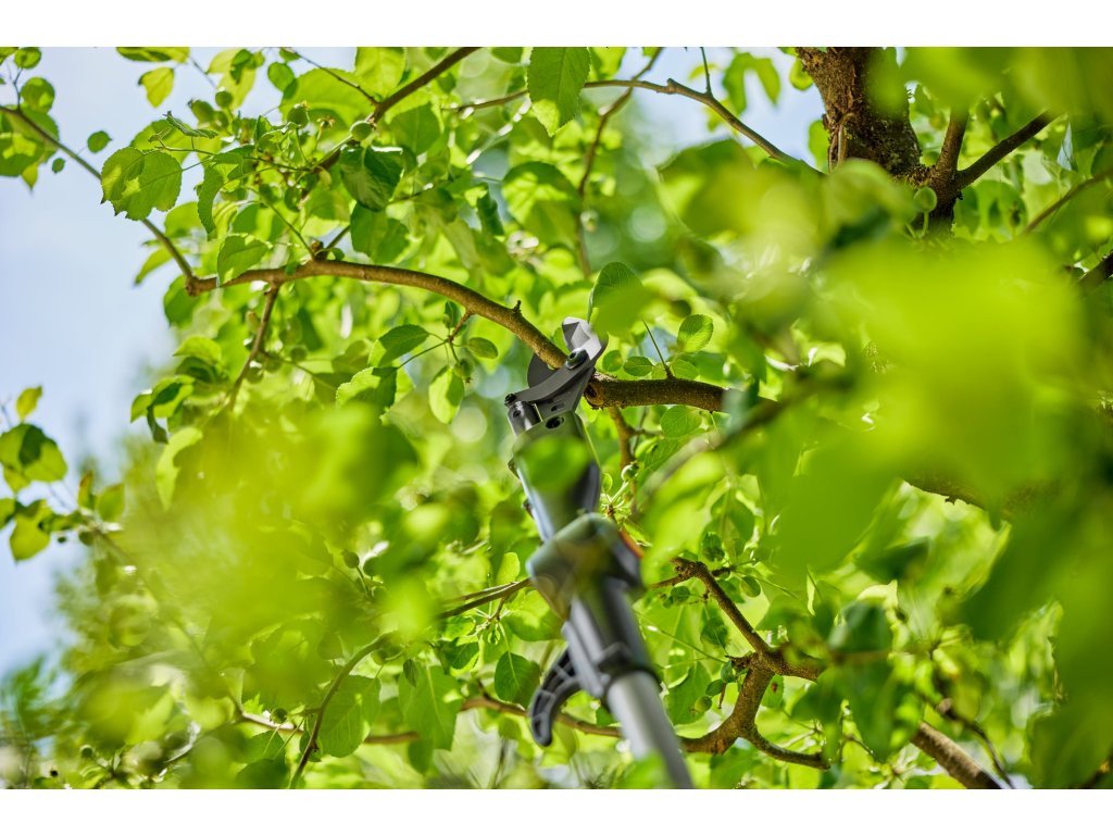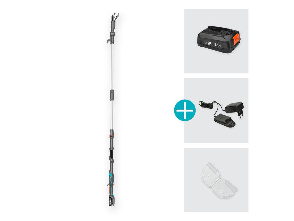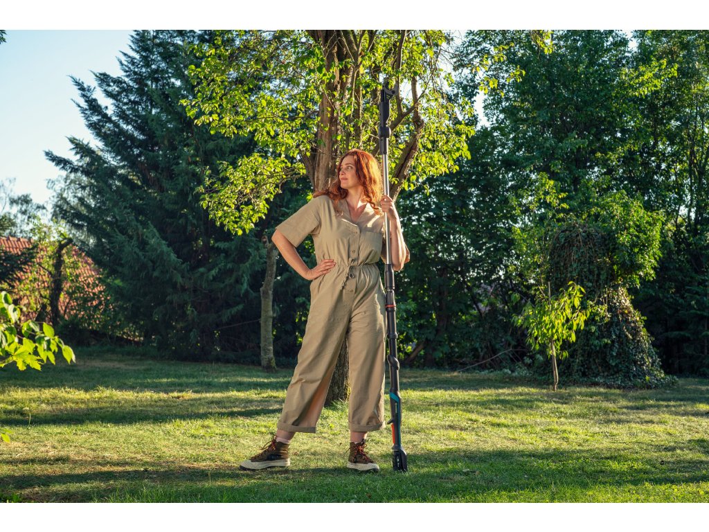 GARDENA akumulátorové teleskopické nůžky na větve HighCut 250/18V P4A připravené k okamžitému použití vám pomohou snadno stříhat ve velkých výškách ze země. Nůžky na větve dosáhnou do délky až 2,5 metru a s výškou uživatele až 4 metry. Díky odnímatelné hřídeli se nůžky HighCut snadno přepravují a skladují. Akumulátor POWER FOR ALL umožňuje snadný střih bez potřeby velké síly. Originální nože GARDENA z kalené oceli jsou vyrobeny v Německu a zajišťují čistý a hladký řez v čerstvém dřevě až do průměru 28 mm. Mají nepřilnavou povrchovou úpravu a jsou přesně broušené, aby se na ně odřezky nelepily. Pomocí otočné tenké řezací hlavy můžete jednotlivé větve řezat v poloze 60 stupňů. Kromě toho vám otočná hlava poskytuje dobrý výhled na místo střihu. Pokud se větve zachytí v koruně stromu, můžete je jednoduše stáhnout dolů pomocí stahovacího háku v horní části násady. LED indikátor v ergonomické rukojeti ukazuje stav nabití akumulátoru. Při plném nabití akumulátoru 2,0 Ah je možné provést až 400 řezů. GARDENA akumulátorové teleskopické nůžky na větve HighCut 250/18V P4A jsou dodávány jako sada připravená k použití s rychlonabíječkou a akumulátorem 18V POWER FOR ALL. ALIANCE POWER FOR ALL je jednou z největších aliancí předních výrobců akumulátorů různých značek, jejíž akumulátory lze použít v mnoha zařízeních určených pro zahradu a dům. To vám umožní ušetřit peníze a zároveň zůstat flexibilní! Po jednoduché online registraci poskytuje GARDENA na akumulátorové teleskopické nůžky na větve tříletou záruku výrobce. Vášeň poháněná značkou GARDENA. JEDEN akumulátorový systém pro všechny úkoly na vaší zahradě.