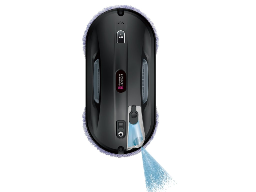HOBOT 388 poskytuje inovativní řešení pro automatické rozprašování vody nebo mycího prostředku HOBOT na povrch oken. Ultrasonický rozprašovač vody vytváří 15 mikrometrů hustou mlhu podobnou lidskému výdechu vzduchu. Tato mlha nejdříve rozpustí nečistoty a následně pomocí speciálních utěrek z mikrovlákna robot okno vyleští. Ultrasonická tryska velmi dobře funguje s mycím prostředkem HOBOT nebo s destilovanou vodou. Díky této technologii HOBOT 388 spotřebuje pouze 1ml vody nebo čisticího prostředku HOBOT na plochu o rozměru 1m2.
