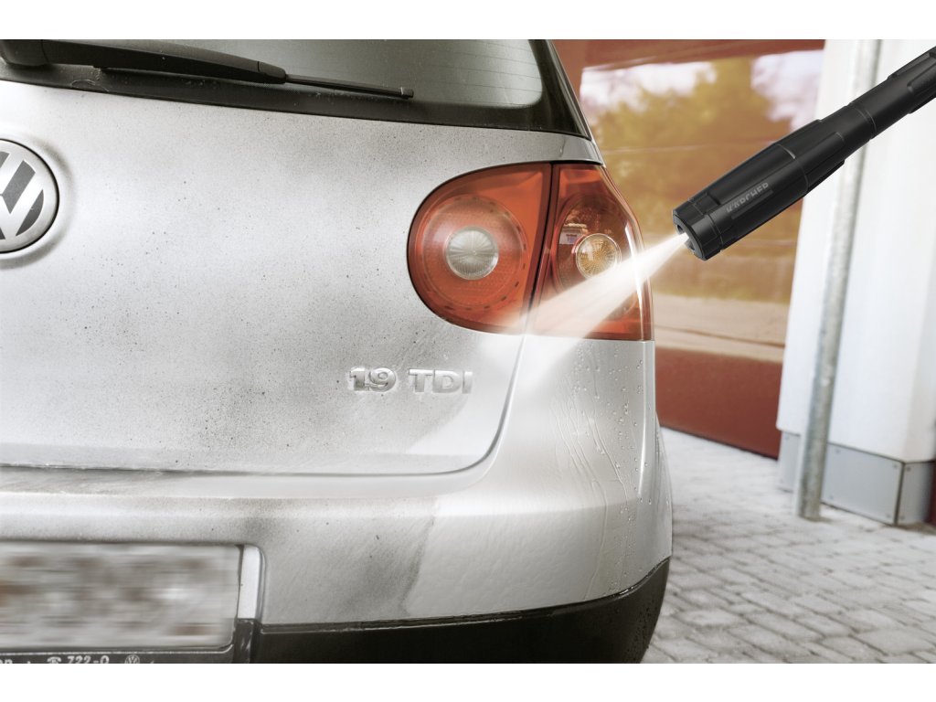 - Vysokotlaká hadice se dá rychle a pohodlně přicvaknout a zase odcvaknout k přístroji a do pistole. To šetří čas a úsilí.