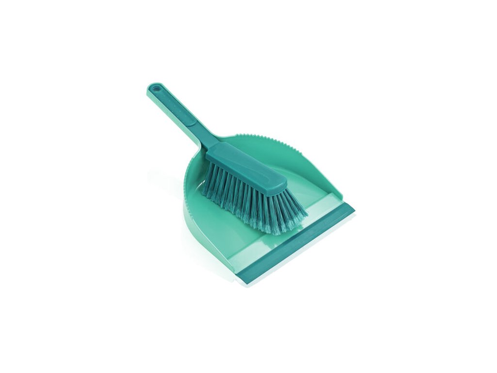 Set obsahuje lopatku a smetáček v tyrkysové barvě. Štětiny smetáčku jsou vyrobeny ze syntetických vláken a tvoří husté chomáčky. Zjemněné konce štětin snadno zametou i ty nejmenší částečky prachu. Spodní část lopatky je zakončena širokou gumovou hranou, díky níž je nametení smetí na lopatku velmi snadné. Smetáček je možné zaklesnout do lopatky a celý set pomocí očka na konci rukojeti lopatky zavěsit.