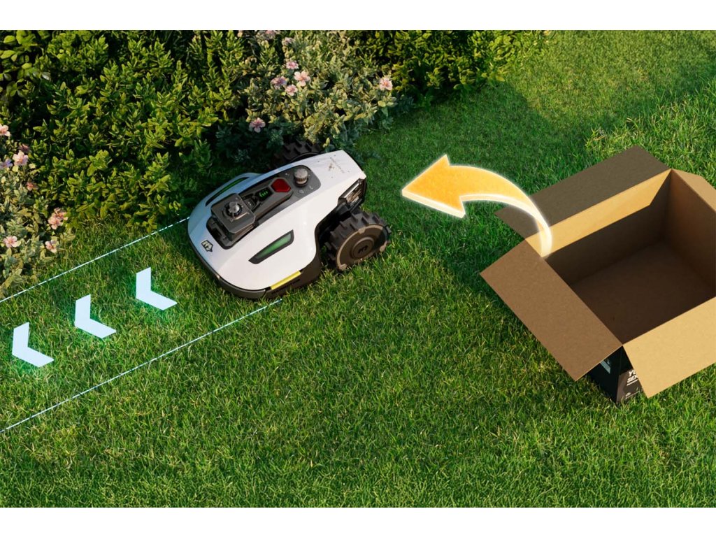 Jakmile baterie dosáhne kapacitu nižší jak 15 %, robotická sekačka YUKA mini 2 1000 se automaticky vrátí do nabíjecí základny a dobije baterii. Po nabití baterie pokračuje v sečení trávy od místa, kde bylo sečení přerušeno.