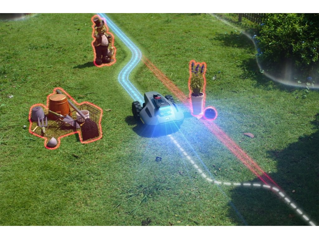 Vytváří 3D mapu zahrady s vysokou hustotou bodů a dokonale rozpoznává prostředí zahrady v reálném čase a umožňuje inteligentní plánování trasy sečení.