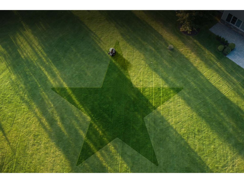 V režimu DropMow není potřeba žádné mapování – stačí sekačku položit, stisknout tlačítka „Mow & Start“ a sekačka začne sekat v pravidelném vzoru tvaru písmene N ve směru, kterým právě stojí.
