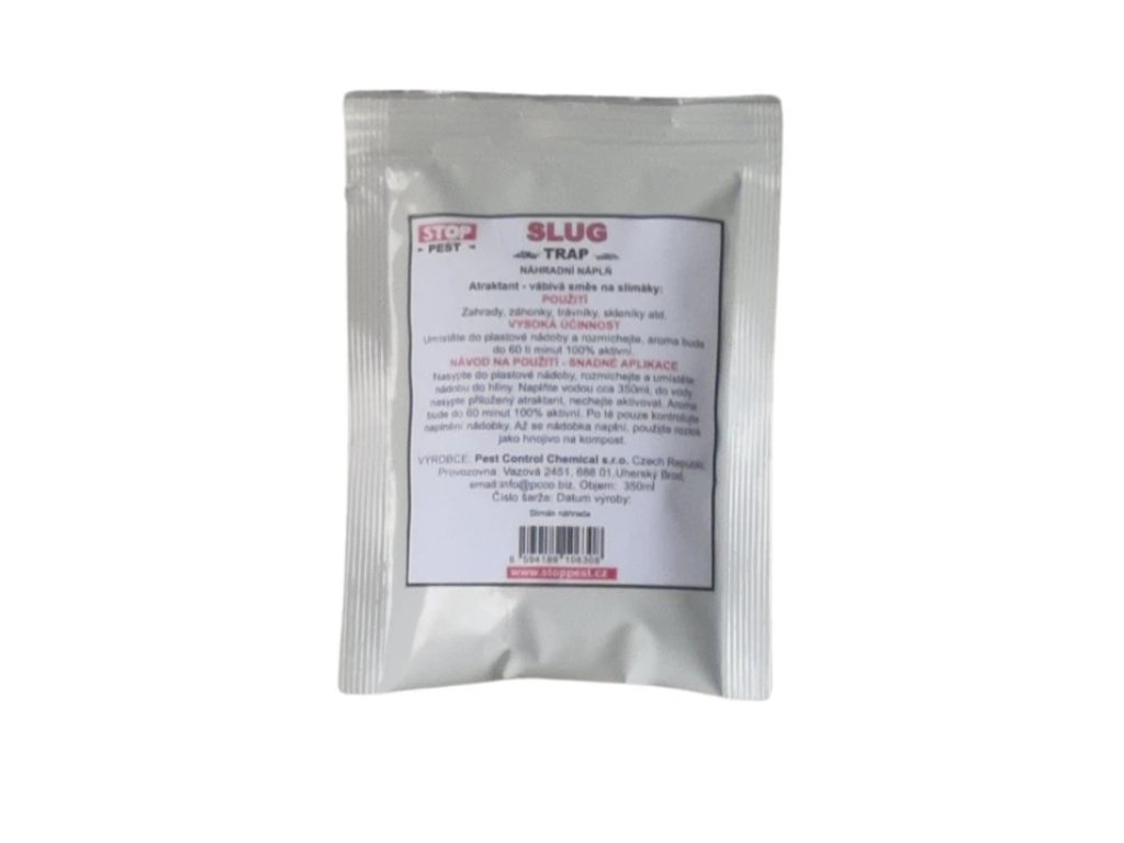 Atraktant přiláká škůdce kteří spadnou do vodného roztoku s aktivátorem, díky kterému se slimák rozpustí.