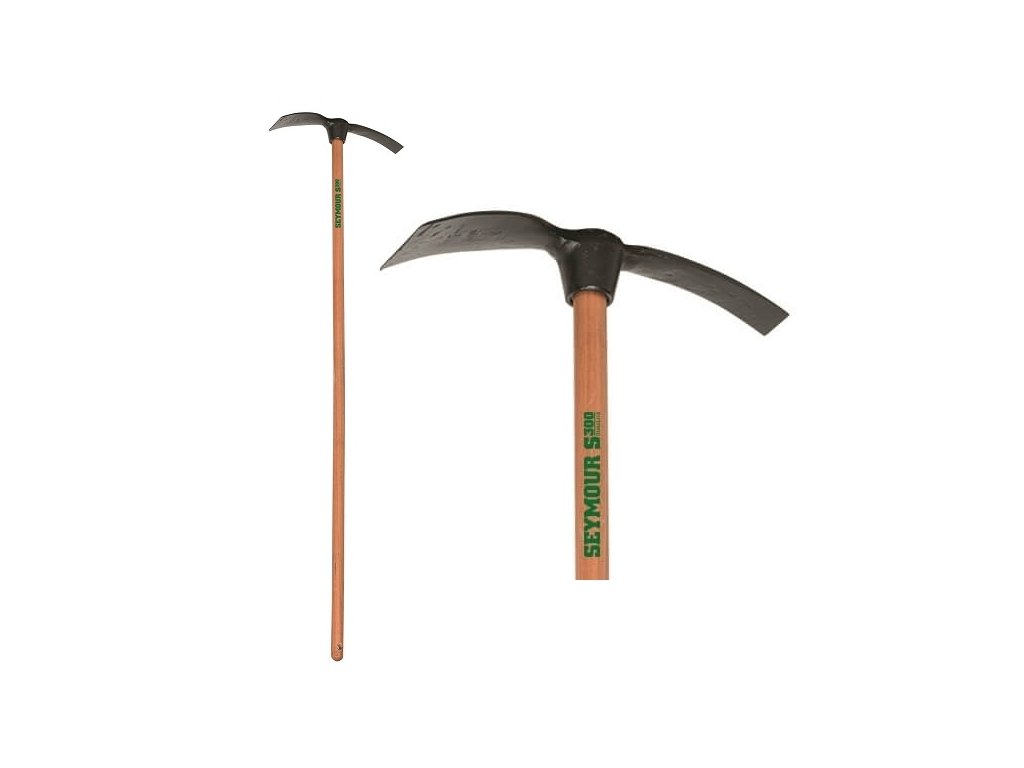 Oboustranná zahradnická motyka s dlouhou 51" (129 cm) dřevěnou násadou. Hmotnost hlavice 3 lb.